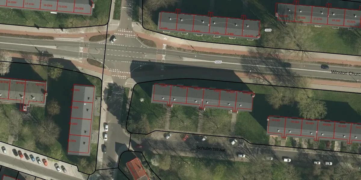 Het perceel waarop Schubertstraat 4-III staat heeft een oppervlakte van 1,6 ha. Dit is een zeer groot perceel. De perceeloppervlakte wordt geregistreerd door het Kadaster. Gedetailleerde informatie over de maten van dit perceel kunt u vinden in het rapport Kadastrale kaart met maatvoering van Schubertstraat 4-III.