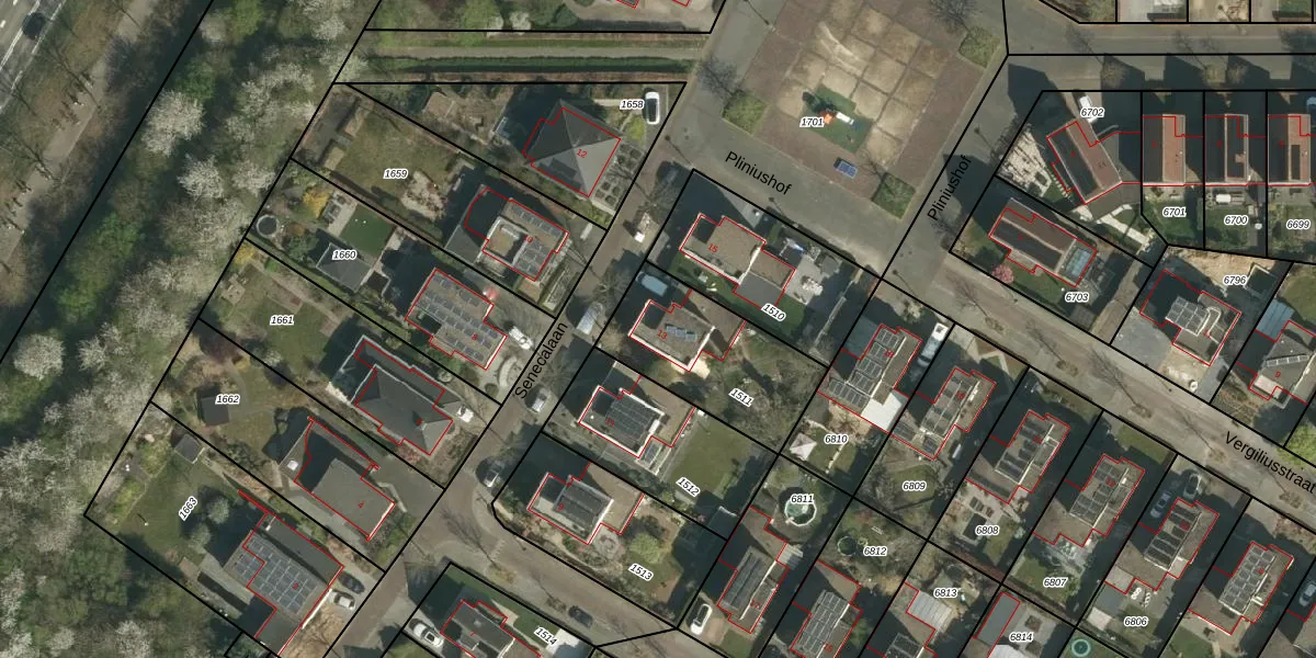 Gebruik de zoekbalk of klik op een perceel voor informatie over de adressen binnen dit perceel.