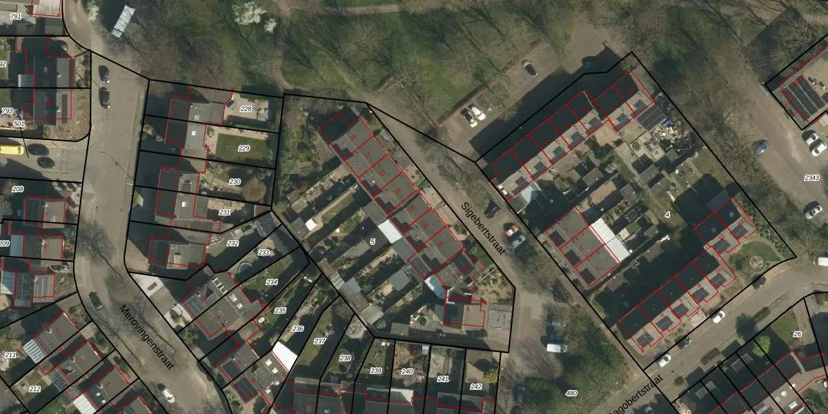 Het perceel waarop Sigebertstraat 18 staat heeft een oppervlakte van 2180 m². Dit is een zeer groot perceel. De perceeloppervlakte wordt geregistreerd door het Kadaster. Gedetailleerde informatie over de maten van dit perceel kunt u vinden in het rapport Kadastrale kaart met maatvoering van Sigebertstraat 18.