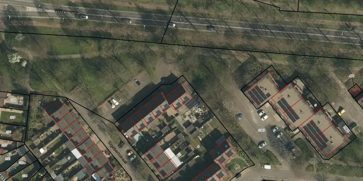 Het perceel waarop Sigebertstraat 19 staat heeft een oppervlakte van 2960 m². Dit is een zeer groot perceel. De perceeloppervlakte wordt geregistreerd door het Kadaster. Gedetailleerde informatie over de maten van dit perceel kunt u vinden in het rapport Kadastrale kaart met maatvoering van Sigebertstraat 19.