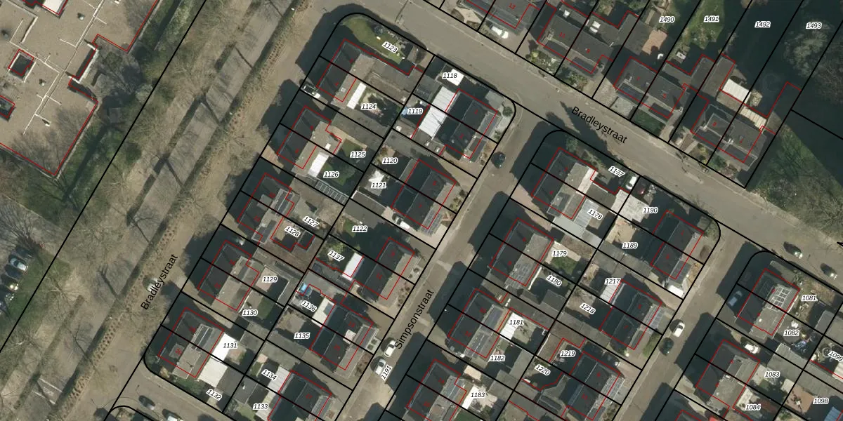 Gebruik de zoekbalk of klik op een perceel voor informatie over de adressen binnen dit perceel.