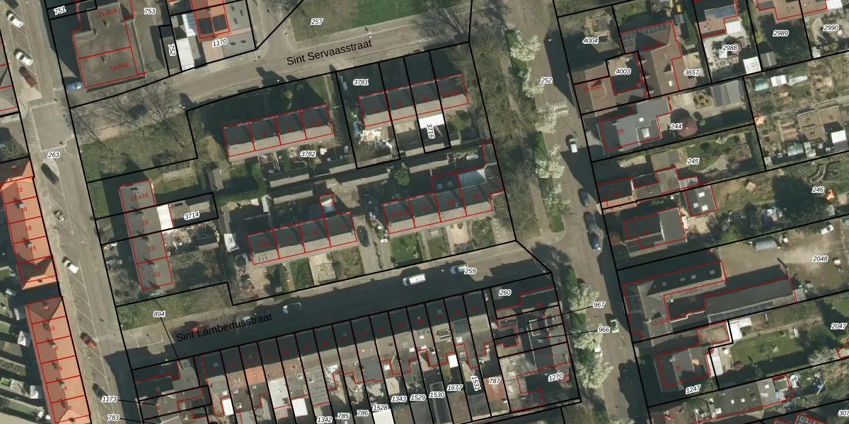 Het perceel waarop Sint Lambertusstraat 12 staat heeft een oppervlakte van 3534 m². Dit is een zeer groot perceel. De perceeloppervlakte wordt geregistreerd door het Kadaster. Gedetailleerde informatie over de maten van dit perceel kunt u vinden in het rapport Kadastrale kaart met maatvoering van Sint Lambertusstraat 12.