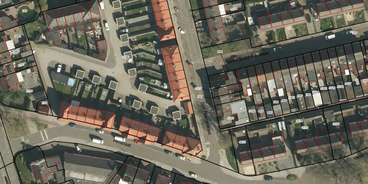 Het perceel waarop Sint Petrusstraat 2 staat heeft een oppervlakte van 5785 m². Dit is een zeer groot perceel. De perceeloppervlakte wordt geregistreerd door het Kadaster. Gedetailleerde informatie over de maten van dit perceel kunt u vinden in het rapport Kadastrale kaart met maatvoering van Sint Petrusstraat 2.
