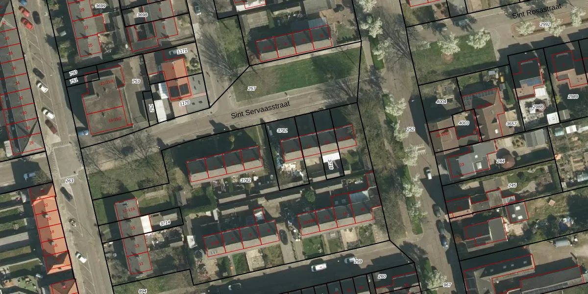 Sint Servaasstraat 9 is gelegen op kadastraal perceel STD00K3781. Deze kadastrale aanduiding is uniek en wordt gebruikt door het Kadaster om eigendomsrechten en andere zakelijke rechten vast te leggen. Het perceel maakt onderdeel uit van de kadastrale gemeente Sittard.