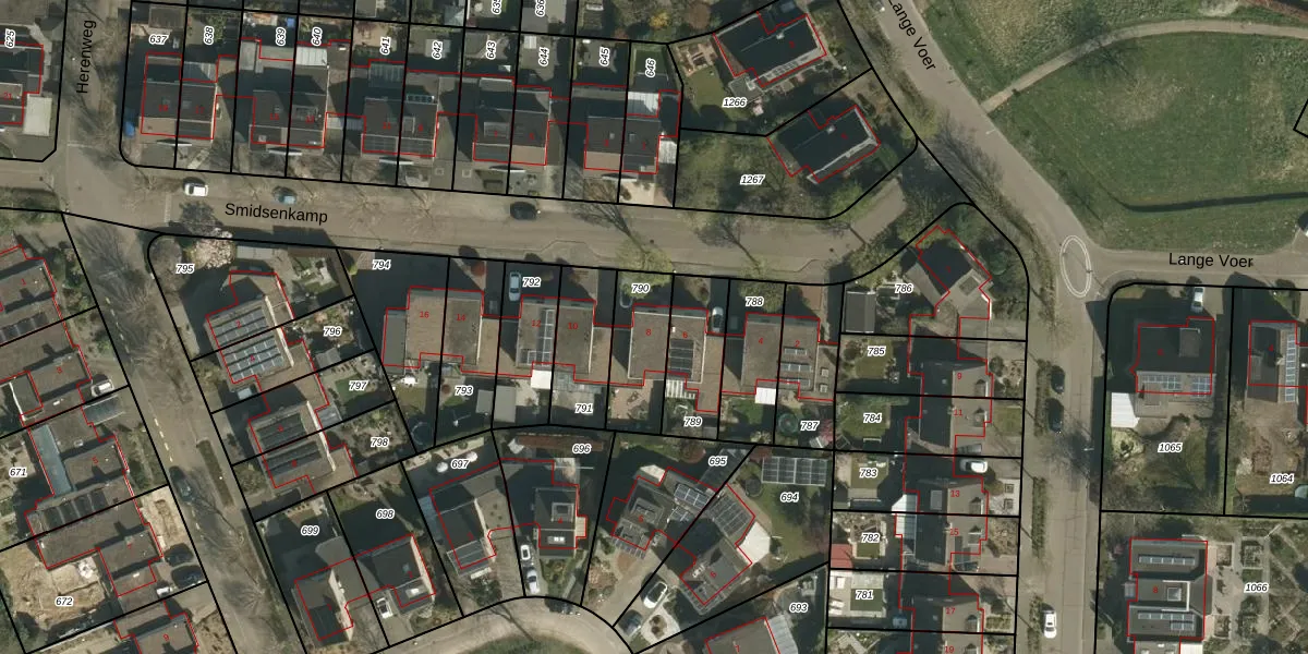 Gebruik de zoekbalk of klik op een perceel voor informatie over de adressen binnen dit perceel.