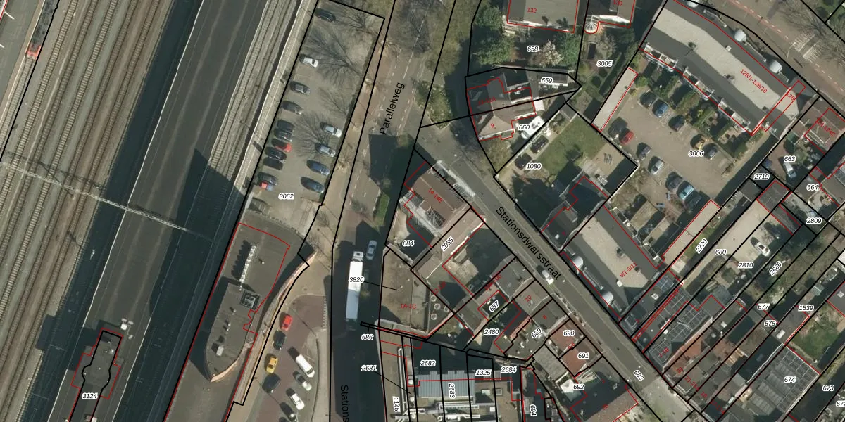 Stationsdwarsstraat 14-E is gelegen op kadastraal perceel STD00K684. Deze kadastrale aanduiding is uniek en wordt gebruikt door het Kadaster om eigendomsrechten en andere zakelijke rechten vast te leggen. Het perceel maakt onderdeel uit van de kadastrale gemeente Sittard.