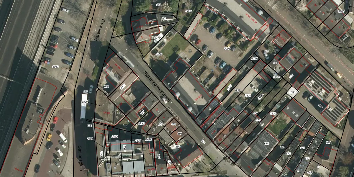 Het perceel waarop Stationsdwarsstraat 5-11 staat heeft een oppervlakte van 2261 m². Dit is een zeer groot perceel. De perceeloppervlakte wordt geregistreerd door het Kadaster. Gedetailleerde informatie over de maten van dit perceel kunt u vinden in het rapport Kadastrale kaart met maatvoering van Stationsdwarsstraat 5-11.