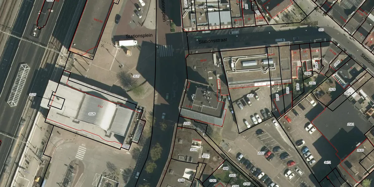 Het perceel waarop Stationsplein 1-III staat heeft een oppervlakte van 2640 m². Dit is een zeer groot perceel. De perceeloppervlakte wordt geregistreerd door het Kadaster. Gedetailleerde informatie over de maten van dit perceel kunt u vinden in het rapport Kadastrale kaart met maatvoering van Stationsplein 1-III.