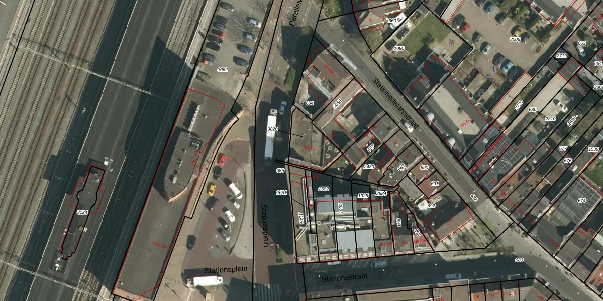 Stationsplein 1-B is gelegen op kadastraal perceel STD00K3820. Deze kadastrale aanduiding is uniek en wordt gebruikt door het Kadaster om eigendomsrechten en andere zakelijke rechten vast te leggen. Het perceel maakt onderdeel uit van de kadastrale gemeente Sittard.