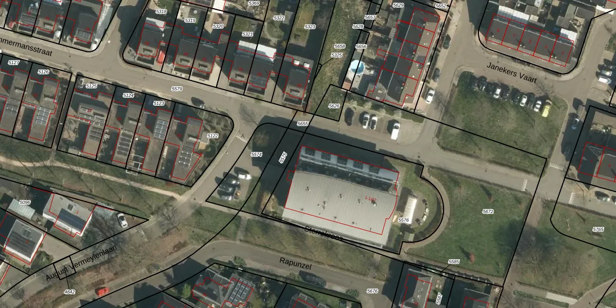 Sterrekroos 1-19 is gelegen op kadastraal perceel STD00B5576. Deze kadastrale aanduiding is uniek en wordt gebruikt door het Kadaster om eigendomsrechten en andere zakelijke rechten vast te leggen. Het perceel maakt onderdeel uit van de kadastrale gemeente Sittard.