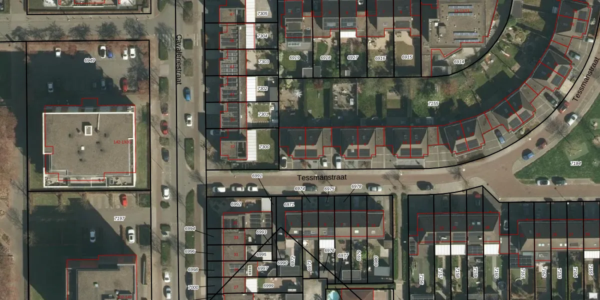 Het perceel waarop Tessmanstraat 2 staat heeft een oppervlakte van 3625 m². Dit is een zeer groot perceel. De perceeloppervlakte wordt geregistreerd door het Kadaster. Gedetailleerde informatie over de maten van dit perceel kunt u vinden in het rapport Kadastrale kaart met maatvoering van Tessmanstraat 2.