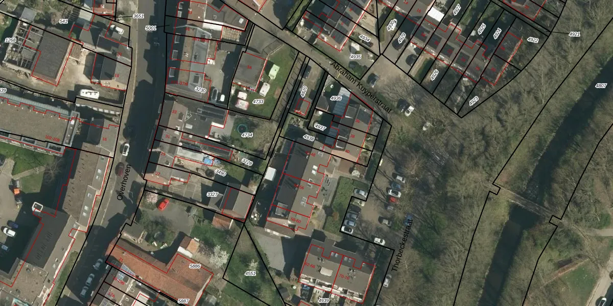 Het perceel waarop Thorbeckestraat 46 staat heeft een oppervlakte van 1980 m². Dit is een zeer groot perceel. De perceeloppervlakte wordt geregistreerd door het Kadaster. Gedetailleerde informatie over de maten van dit perceel kunt u vinden in het rapport Kadastrale kaart met maatvoering van Thorbeckestraat 46.