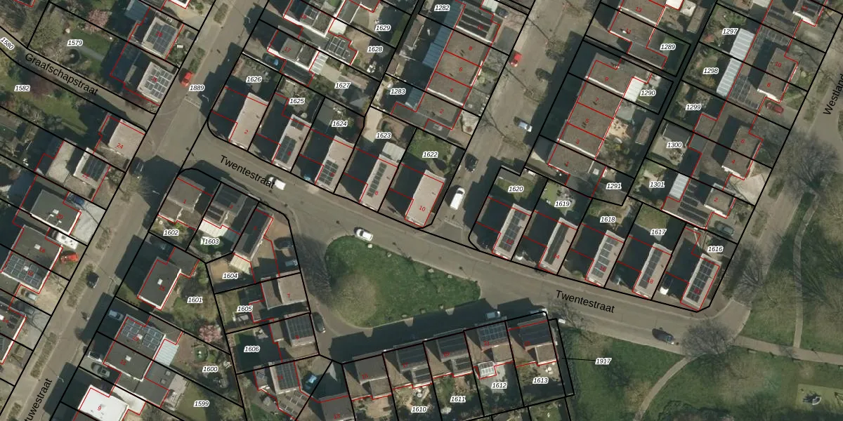 Het perceel waarop Twentestraat 10 staat heeft een oppervlakte van 279 m². Dit is een middelgroot perceel. De perceeloppervlakte wordt geregistreerd door het Kadaster. Gedetailleerde informatie over de maten van dit perceel kunt u vinden in het rapport Kadastrale kaart met maatvoering van Twentestraat 10.