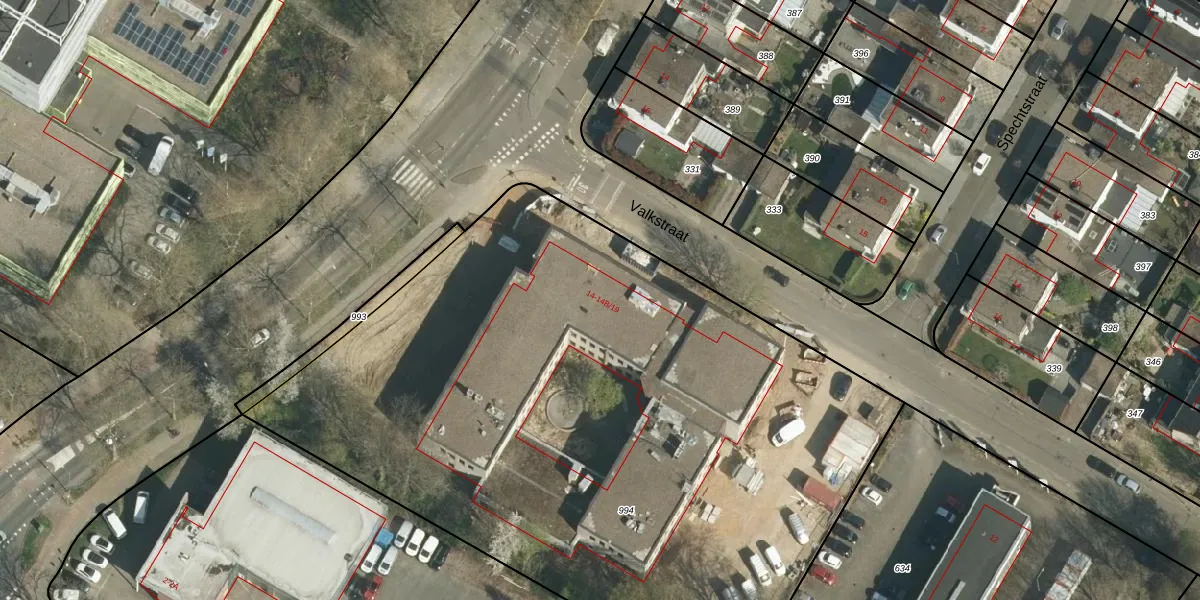 Valkstraat 14-B-15 is gelegen op kadastraal perceel STD00L994. Deze kadastrale aanduiding is uniek en wordt gebruikt door het Kadaster om eigendomsrechten en andere zakelijke rechten vast te leggen. Het perceel maakt onderdeel uit van de kadastrale gemeente Sittard.