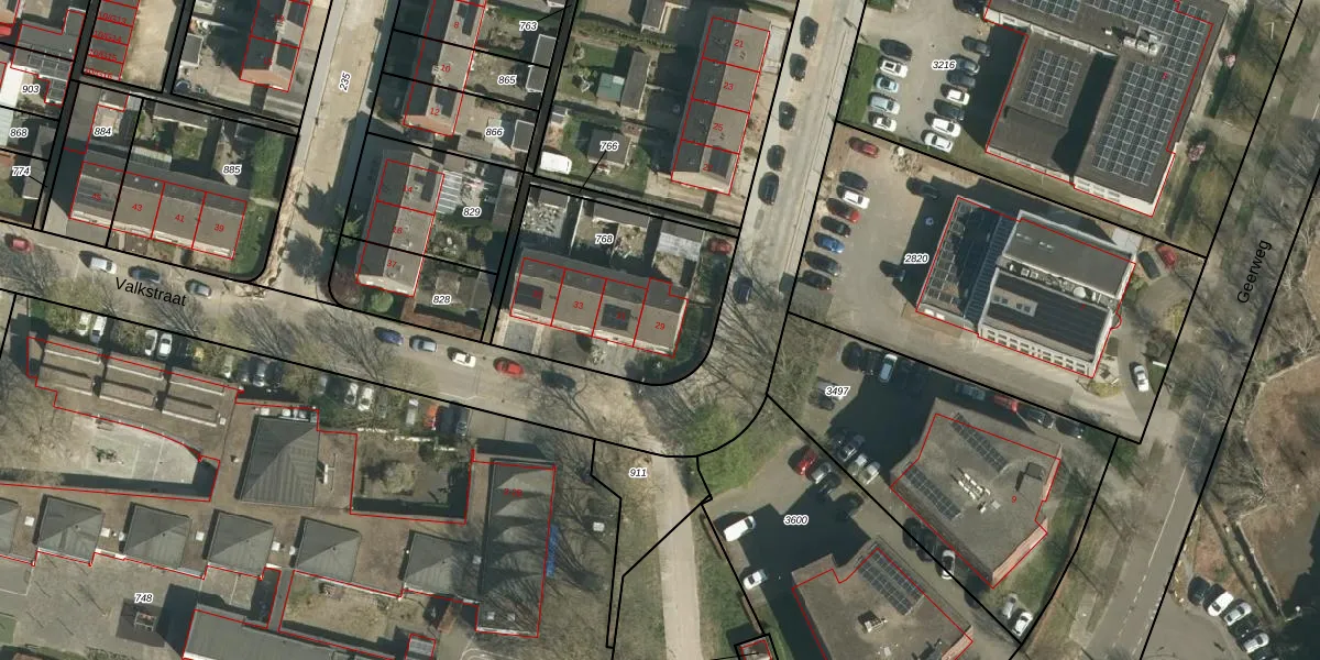 Valkstraat 29 is gelegen op kadastraal perceel STD00L768. Deze kadastrale aanduiding is uniek en wordt gebruikt door het Kadaster om eigendomsrechten en andere zakelijke rechten vast te leggen. Het perceel maakt onderdeel uit van de kadastrale gemeente Sittard.