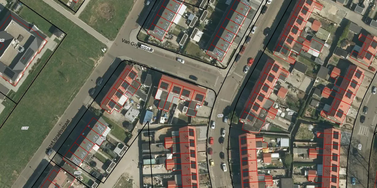 Het perceel waarop Van Goghstraat 25 staat heeft een oppervlakte van 3965 m². Dit is een zeer groot perceel. De perceeloppervlakte wordt geregistreerd door het Kadaster. Gedetailleerde informatie over de maten van dit perceel kunt u vinden in het rapport Kadastrale kaart met maatvoering van Van Goghstraat 25.
