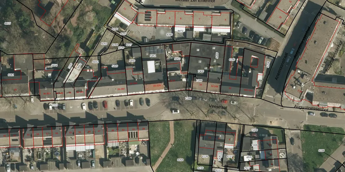 Veestraat 20 is gelegen op kadastraal perceel STD00D5453. Deze kadastrale aanduiding is uniek en wordt gebruikt door het Kadaster om eigendomsrechten en andere zakelijke rechten vast te leggen. Het perceel maakt onderdeel uit van de kadastrale gemeente Sittard.