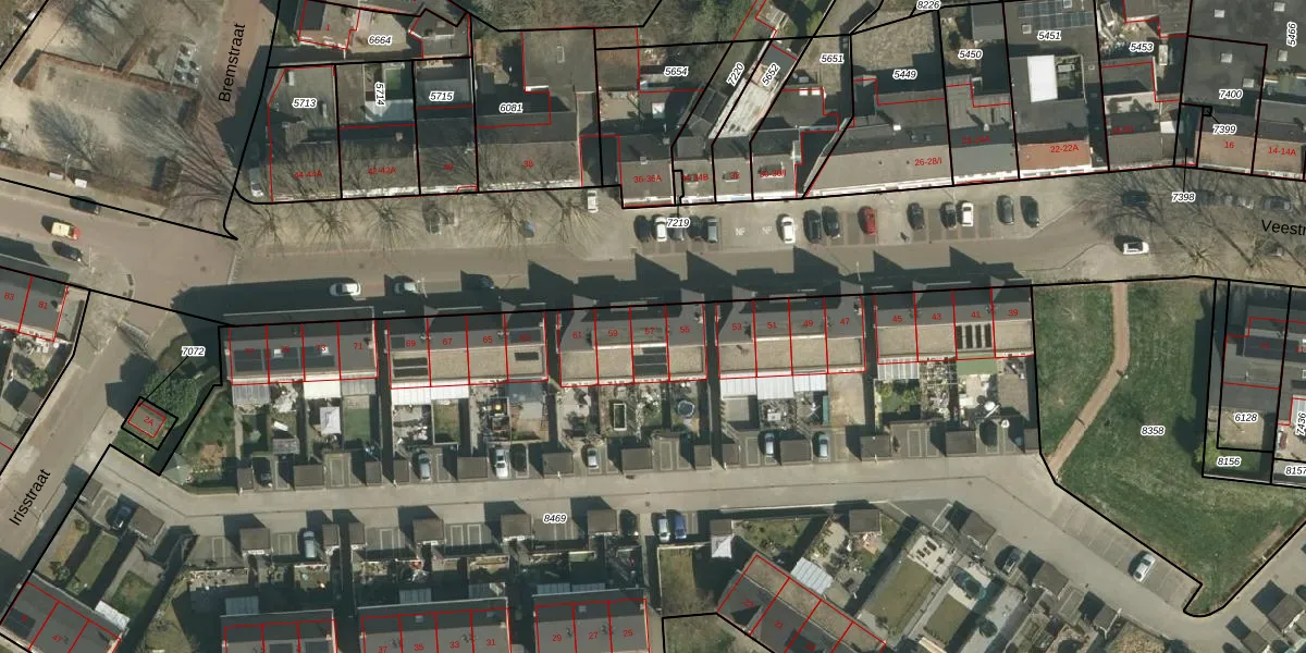Veestraat 57 is gelegen op kadastraal perceel STD00D8469. Deze kadastrale aanduiding is uniek en wordt gebruikt door het Kadaster om eigendomsrechten en andere zakelijke rechten vast te leggen. Het perceel maakt onderdeel uit van de kadastrale gemeente Sittard.