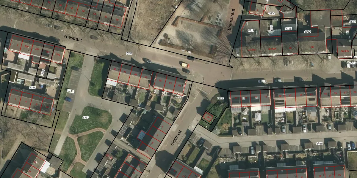 Het perceel waarop Veestraat 81 staat heeft een oppervlakte van 9093 m². Dit is een zeer groot perceel. De perceeloppervlakte wordt geregistreerd door het Kadaster. Gedetailleerde informatie over de maten van dit perceel kunt u vinden in het rapport Kadastrale kaart met maatvoering van Veestraat 81.