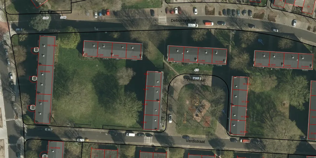 Het perceel waarop Verdistraat 8 staat heeft een oppervlakte van 1,1 ha. Dit is een zeer groot perceel. De perceeloppervlakte wordt geregistreerd door het Kadaster. Gedetailleerde informatie over de maten van dit perceel kunt u vinden in het rapport Kadastrale kaart met maatvoering van Verdistraat 8.
