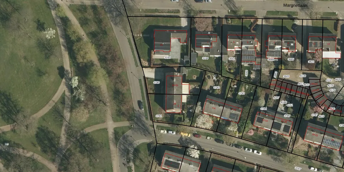 Het perceel waarop Vijverweg 24 staat heeft een oppervlakte van 516 m². Dit is een groot perceel. De perceeloppervlakte wordt geregistreerd door het Kadaster. Gedetailleerde informatie over de maten van dit perceel kunt u vinden in het rapport Kadastrale kaart met maatvoering van Vijverweg 24.