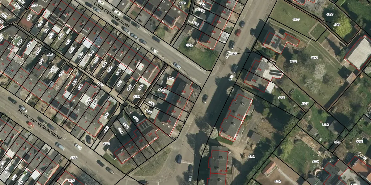 Gebruik de zoekbalk of klik op een perceel voor informatie over de adressen binnen dit perceel.