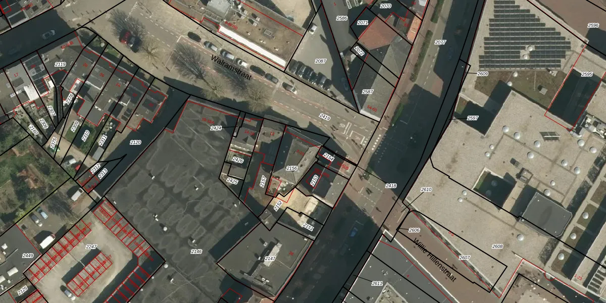 Walramstraat 10 is gelegen op kadastraal perceel STD00F2156. Deze kadastrale aanduiding is uniek en wordt gebruikt door het Kadaster om eigendomsrechten en andere zakelijke rechten vast te leggen. Het perceel maakt onderdeel uit van de kadastrale gemeente Sittard.