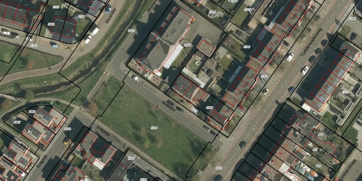 Het perceel waarop Walstro 4 staat heeft een oppervlakte van 365 m². Dit is een groot perceel. De perceeloppervlakte wordt geregistreerd door het Kadaster. Gedetailleerde informatie over de maten van dit perceel kunt u vinden in het rapport Kadastrale kaart met maatvoering van Walstro 4.