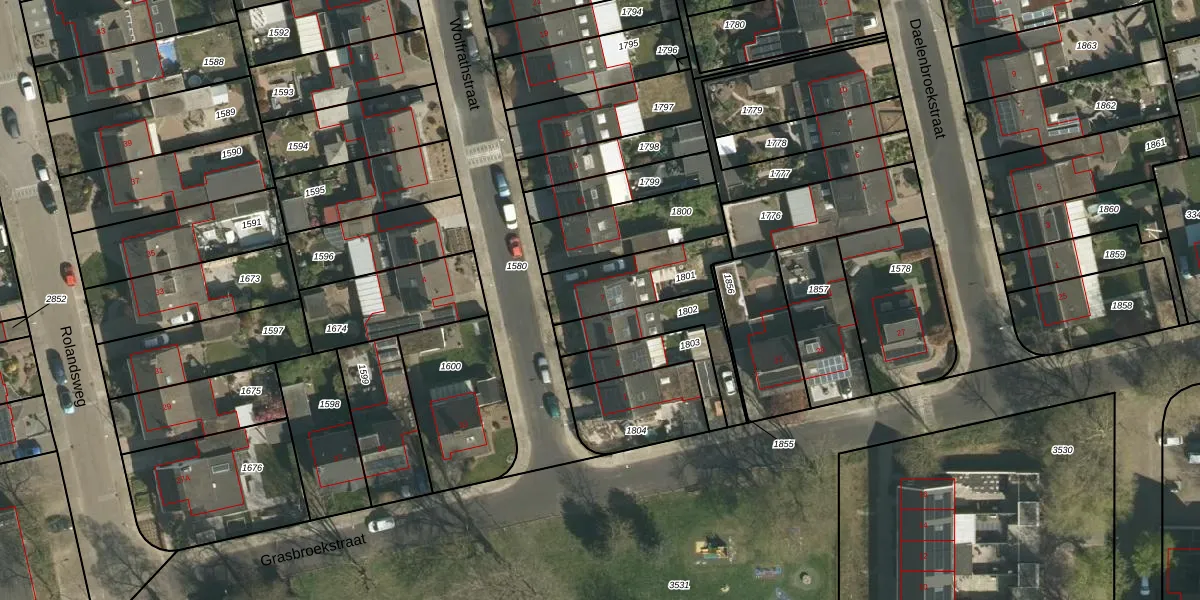 Gebruik de zoekbalk of klik op een perceel voor informatie over de adressen binnen dit perceel.