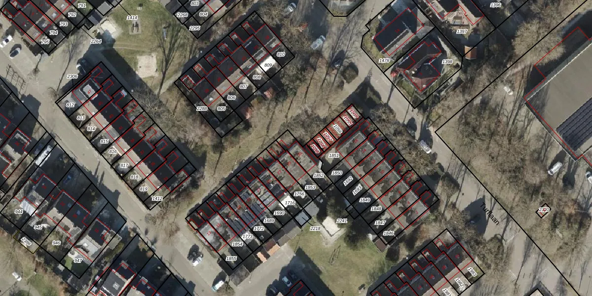 Gebruik de zoekbalk of klik op een perceel voor informatie over de adressen binnen dit perceel.