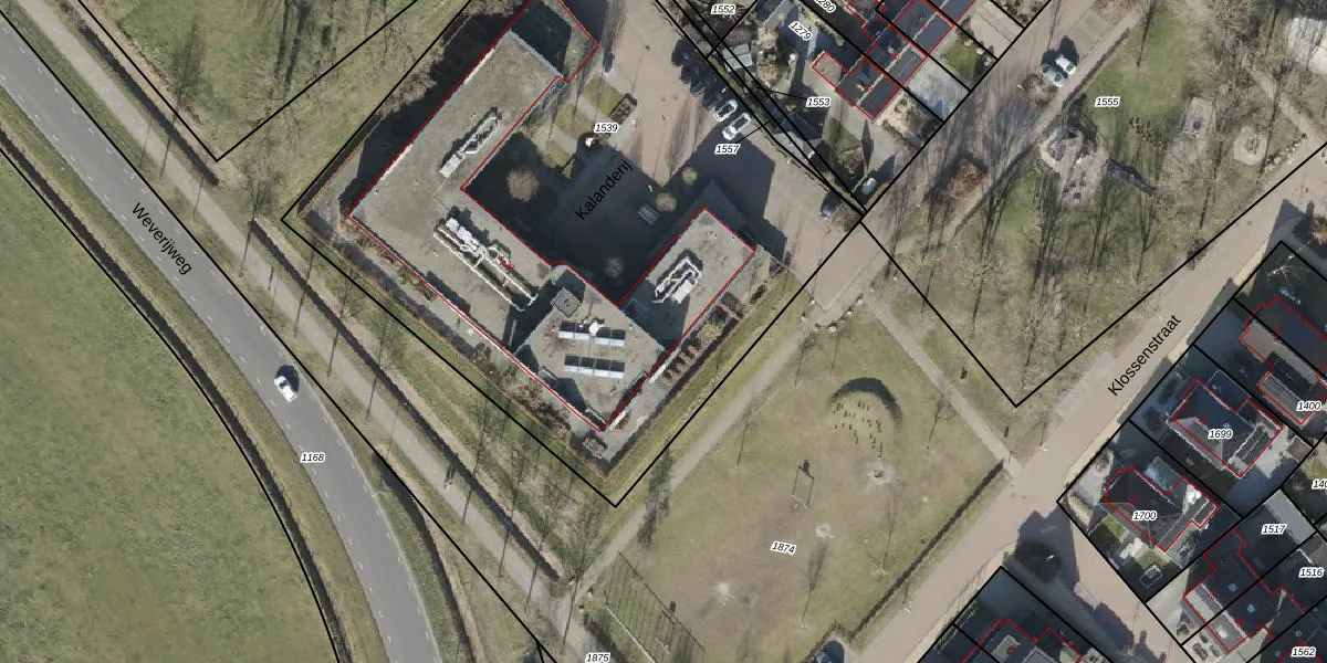 Het perceel waarop Kalanderij 14 staat heeft een oppervlakte van 4013 m². Dit is een zeer groot perceel. De perceeloppervlakte wordt geregistreerd door het Kadaster. Gedetailleerde informatie over de maten van dit perceel kunt u vinden in het rapport Kadastrale kaart met maatvoering van Kalanderij 14.