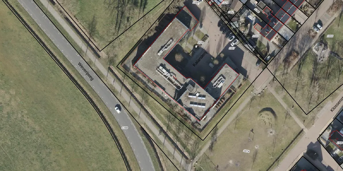 Het perceel waarop Kalanderij 23 staat heeft een oppervlakte van 4013 m². Dit is een zeer groot perceel. De perceeloppervlakte wordt geregistreerd door het Kadaster. Gedetailleerde informatie over de maten van dit perceel kunt u vinden in het rapport Kadastrale kaart met maatvoering van Kalanderij 23.