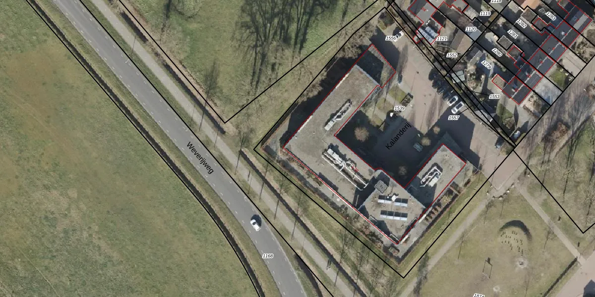 Het perceel waarop Kalanderij 8 staat heeft een oppervlakte van 4013 m². Dit is een zeer groot perceel. De perceeloppervlakte wordt geregistreerd door het Kadaster. Gedetailleerde informatie over de maten van dit perceel kunt u vinden in het rapport Kadastrale kaart met maatvoering van Kalanderij 8.