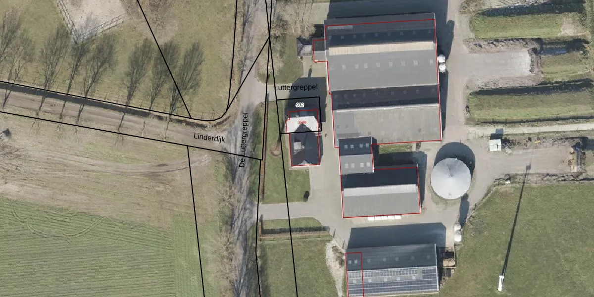 Het perceel waarop Luttergreppel 8-a staat heeft een oppervlakte van 9,1 ha. Dit is een zeer groot perceel. De perceeloppervlakte wordt geregistreerd door het Kadaster. Gedetailleerde informatie over de maten van dit perceel kunt u vinden in het rapport Kadastrale kaart met maatvoering van Luttergreppel 8-a.