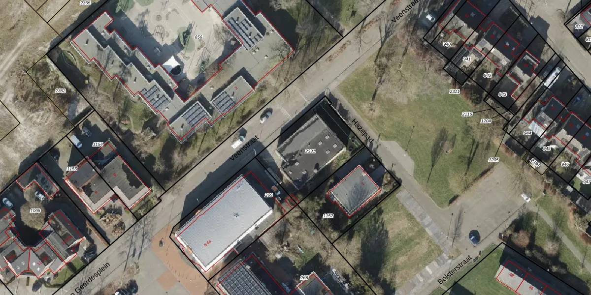 Het perceel waarop Veenstraat 1-a staat heeft een oppervlakte van 658 m². Dit is een groot perceel. De perceeloppervlakte wordt geregistreerd door het Kadaster. Gedetailleerde informatie over de maten van dit perceel kunt u vinden in het rapport Kadastrale kaart met maatvoering van Veenstraat 1-a.