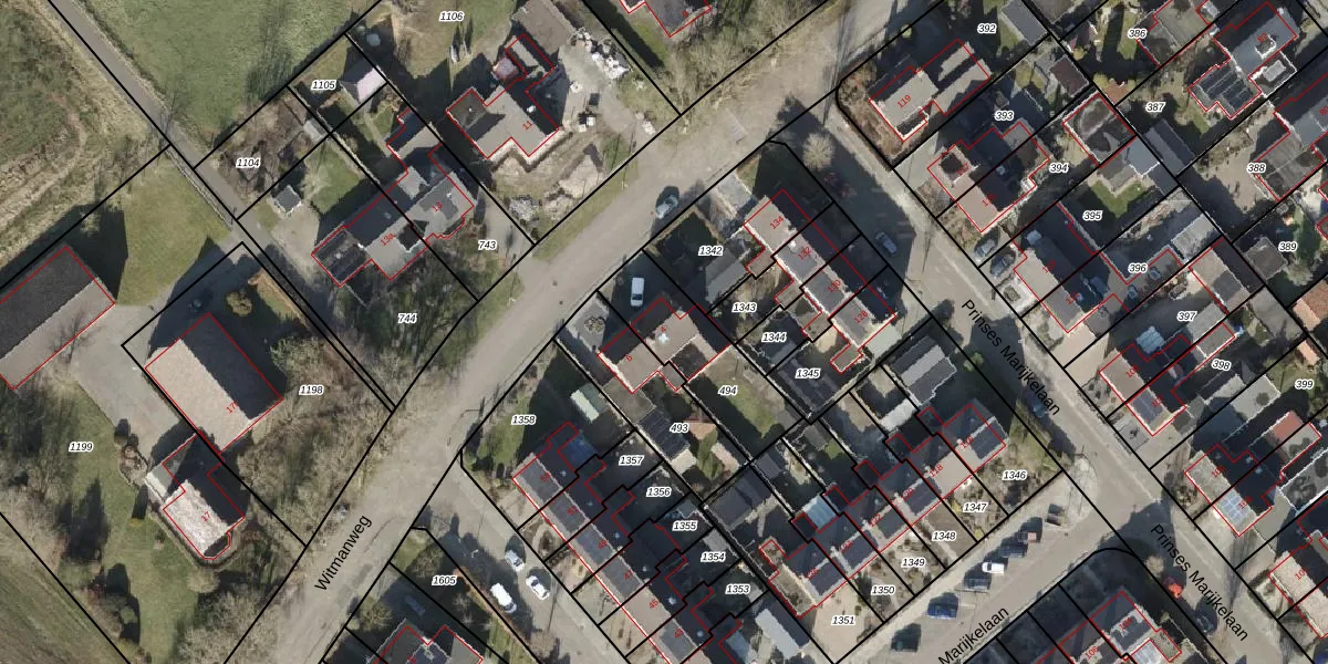 Het perceel waarop Witmanweg 4 staat heeft een oppervlakte van 343 m². Dit is een groot perceel. De perceeloppervlakte wordt geregistreerd door het Kadaster. Gedetailleerde informatie over de maten van dit perceel kunt u vinden in het rapport Kadastrale kaart met maatvoering van Witmanweg 4.