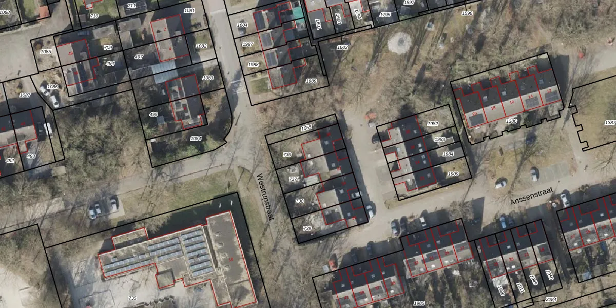 Gebruik de zoekbalk of klik op een perceel voor informatie over de adressen binnen dit perceel.