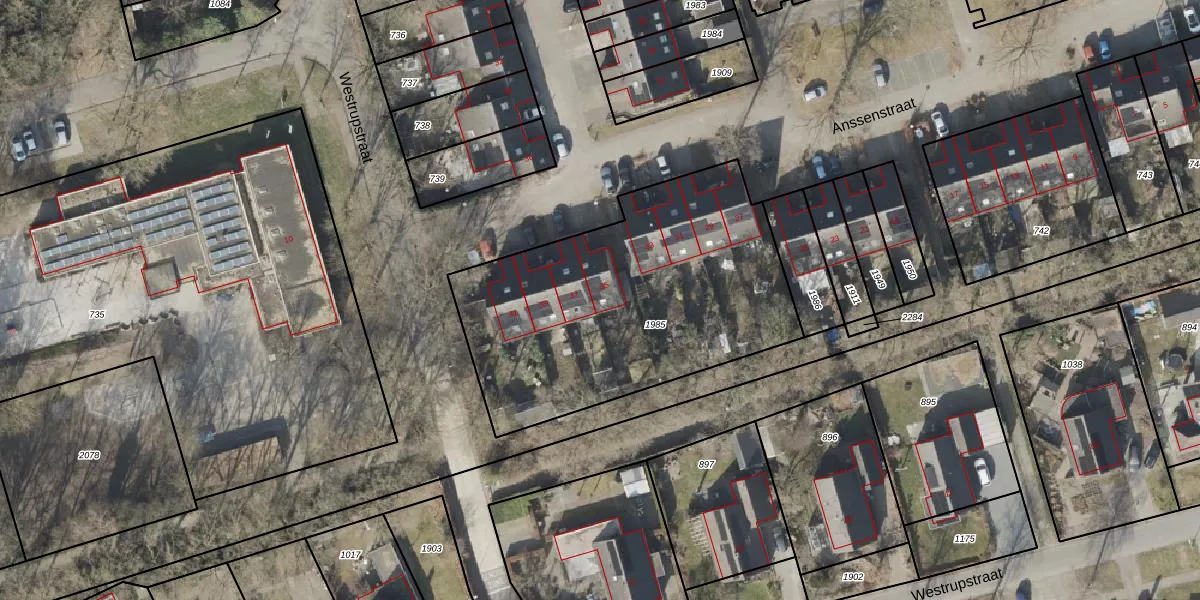 Het perceel waarop Anssenstraat 35 staat heeft een oppervlakte van 1586 m². Dit is een zeer groot perceel. De perceeloppervlakte wordt geregistreerd door het Kadaster. Gedetailleerde informatie over de maten van dit perceel kunt u vinden in het rapport Kadastrale kaart met maatvoering van Anssenstraat 35.