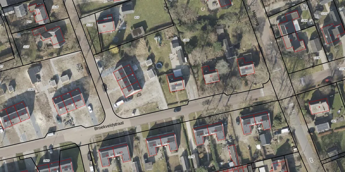 Het perceel waarop Broekveldstraat 14 staat heeft een oppervlakte van 5955 m². Dit is een zeer groot perceel. De perceeloppervlakte wordt geregistreerd door het Kadaster. Gedetailleerde informatie over de maten van dit perceel kunt u vinden in het rapport Kadastrale kaart met maatvoering van Broekveldstraat 14.
