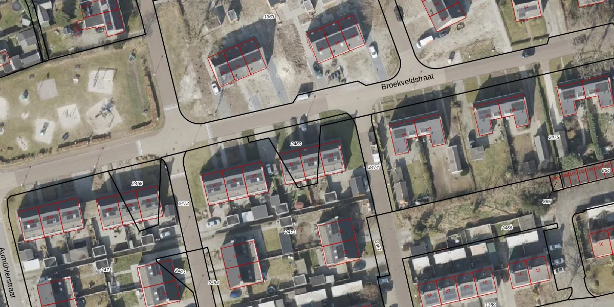 Broekveldstraat 29 is gelegen op kadastraal perceel SLE00R2469. Deze kadastrale aanduiding is uniek en wordt gebruikt door het Kadaster om eigendomsrechten en andere zakelijke rechten vast te leggen. Het perceel maakt onderdeel uit van de kadastrale gemeente Sleen.