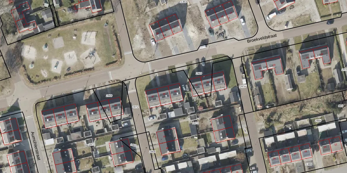 Broekveldstraat 33 is gelegen op kadastraal perceel SLE00R2473. Deze kadastrale aanduiding is uniek en wordt gebruikt door het Kadaster om eigendomsrechten en andere zakelijke rechten vast te leggen. Het perceel maakt onderdeel uit van de kadastrale gemeente Sleen.