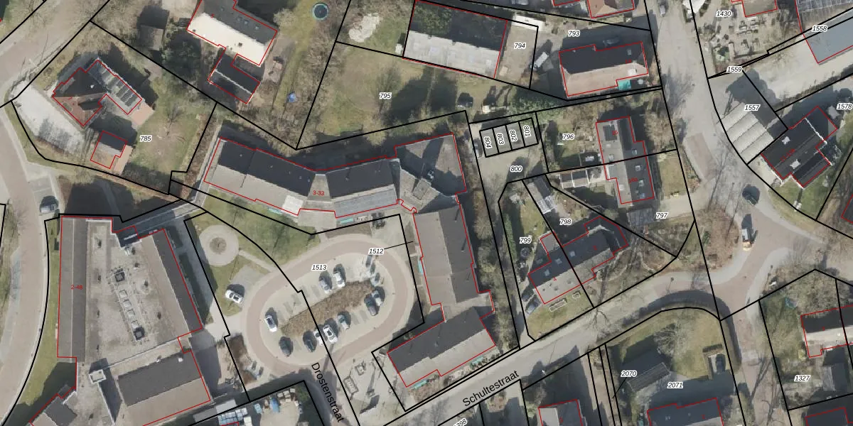 Drostenstraat 11 is gelegen op kadastraal perceel SLE00R1512. Deze kadastrale aanduiding is uniek en wordt gebruikt door het Kadaster om eigendomsrechten en andere zakelijke rechten vast te leggen. Het perceel maakt onderdeel uit van de kadastrale gemeente Sleen.