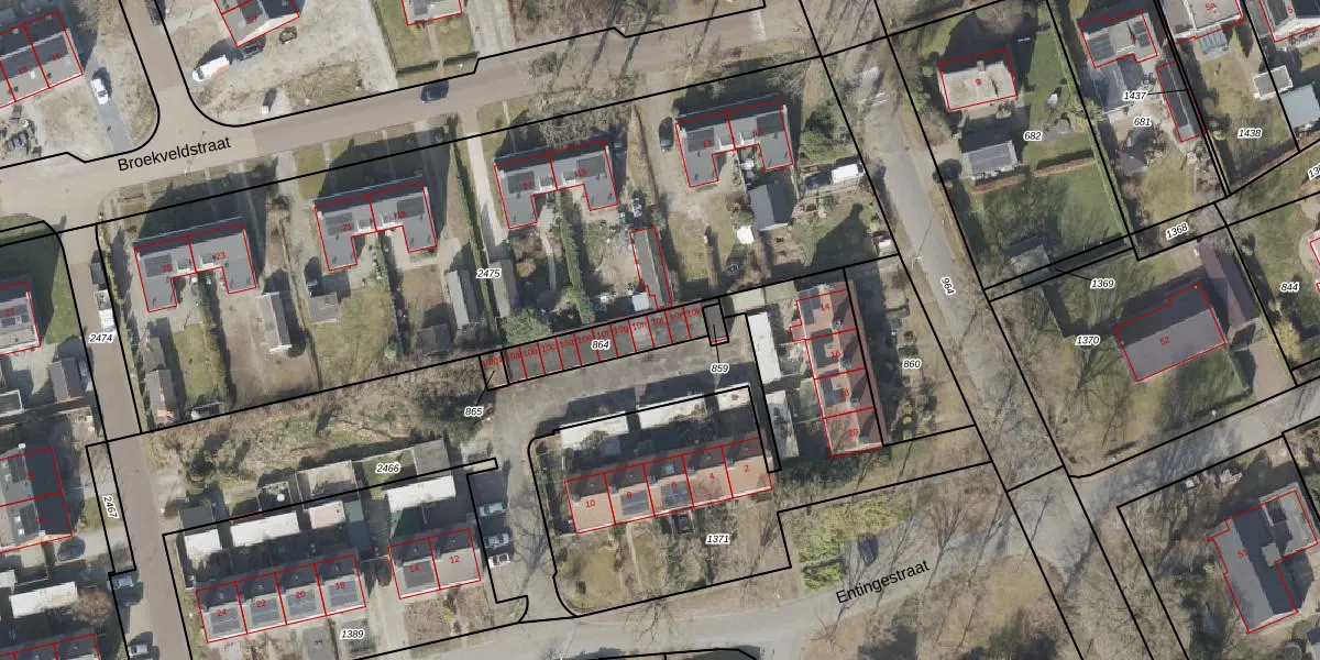 Entingestraat 10-i is gelegen op kadastraal perceel SLE00R864. Deze kadastrale aanduiding is uniek en wordt gebruikt door het Kadaster om eigendomsrechten en andere zakelijke rechten vast te leggen. Het perceel maakt onderdeel uit van de kadastrale gemeente Sleen.