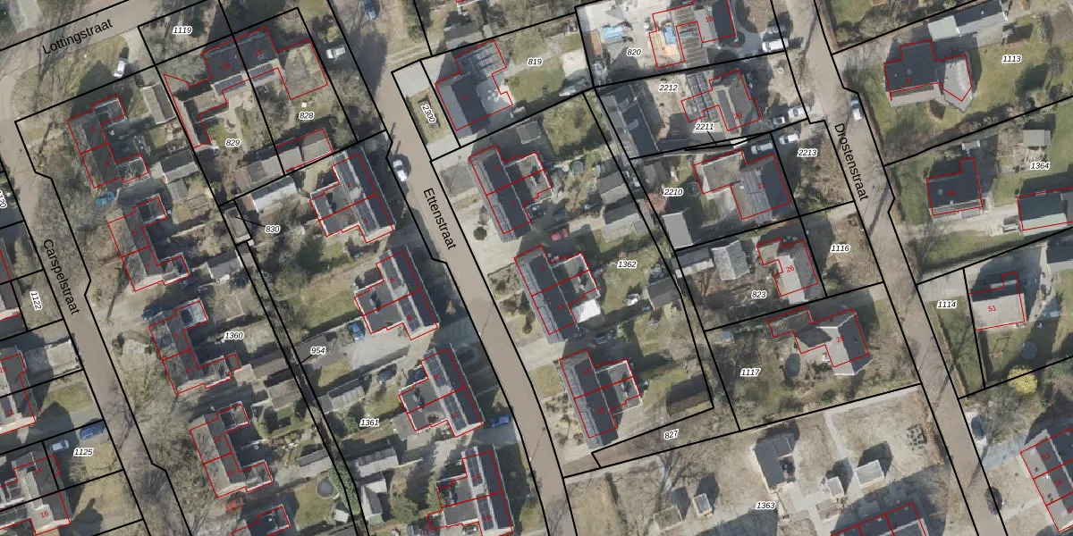 Het perceel waarop Ettenstraat 9 staat heeft een oppervlakte van 1990 m². Dit is een zeer groot perceel. De perceeloppervlakte wordt geregistreerd door het Kadaster. Gedetailleerde informatie over de maten van dit perceel kunt u vinden in het rapport Kadastrale kaart met maatvoering van Ettenstraat 9.