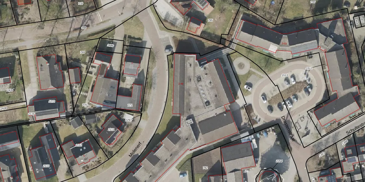 Het perceel waarop Molenerf 24 staat heeft een oppervlakte van 3565 m². Dit is een zeer groot perceel. De perceeloppervlakte wordt geregistreerd door het Kadaster. Gedetailleerde informatie over de maten van dit perceel kunt u vinden in het rapport Kadastrale kaart met maatvoering van Molenerf 24.