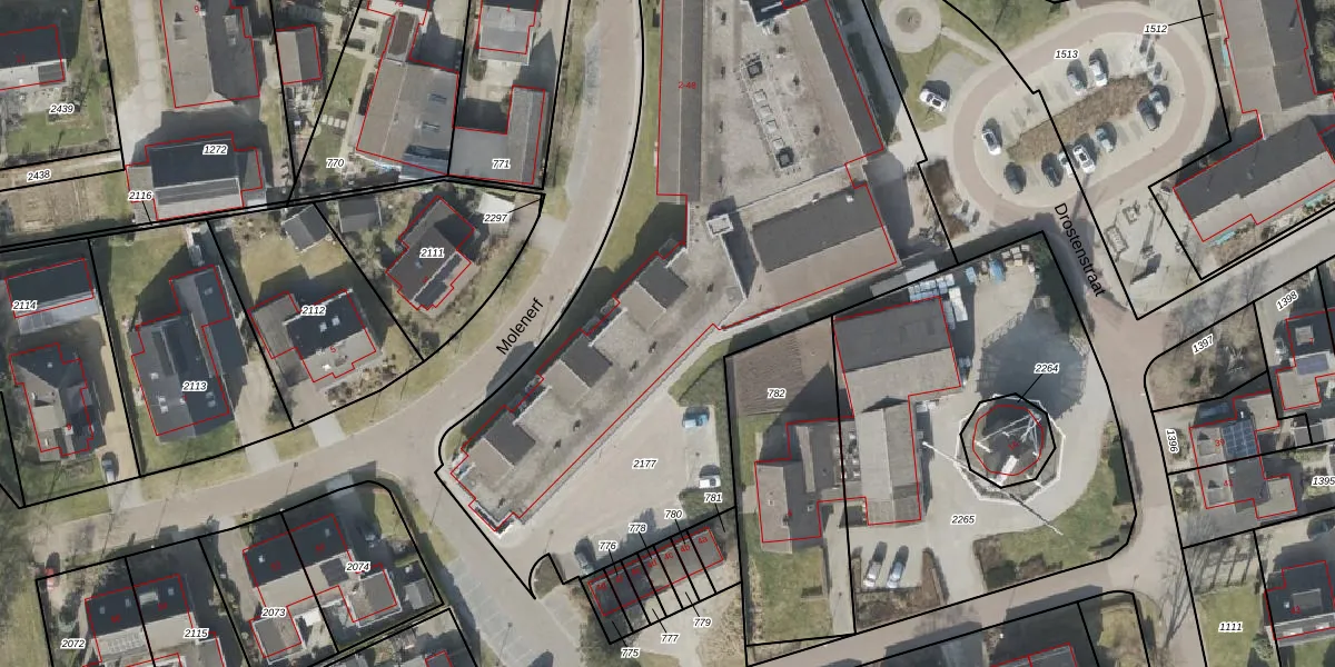 Het perceel waarop Molenerf 48 staat heeft een oppervlakte van 3565 m². Dit is een zeer groot perceel. De perceeloppervlakte wordt geregistreerd door het Kadaster. Gedetailleerde informatie over de maten van dit perceel kunt u vinden in het rapport Kadastrale kaart met maatvoering van Molenerf 48.