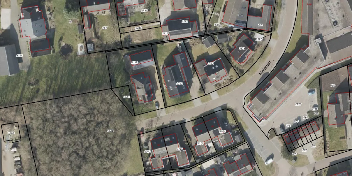 Het perceel waarop Molenerf 7 staat heeft een oppervlakte van 747 m². Dit is een groot perceel. De perceeloppervlakte wordt geregistreerd door het Kadaster. Gedetailleerde informatie over de maten van dit perceel kunt u vinden in het rapport Kadastrale kaart met maatvoering van Molenerf 7.