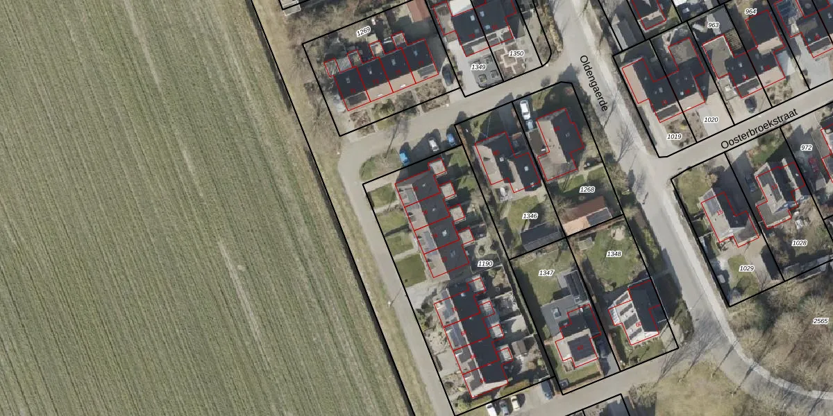 Het perceel waarop Oldengaerde 76 staat heeft een oppervlakte van 1554 m². Dit is een zeer groot perceel. De perceeloppervlakte wordt geregistreerd door het Kadaster. Gedetailleerde informatie over de maten van dit perceel kunt u vinden in het rapport Kadastrale kaart met maatvoering van Oldengaerde 76.