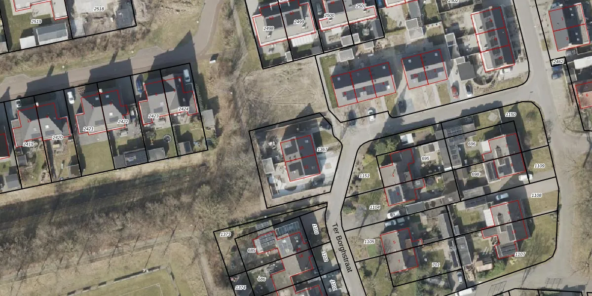 Ter Borghstraat 10 is gelegen op kadastraal perceel SLE00R1367. Deze kadastrale aanduiding is uniek en wordt gebruikt door het Kadaster om eigendomsrechten en andere zakelijke rechten vast te leggen. Het perceel maakt onderdeel uit van de kadastrale gemeente Sleen.