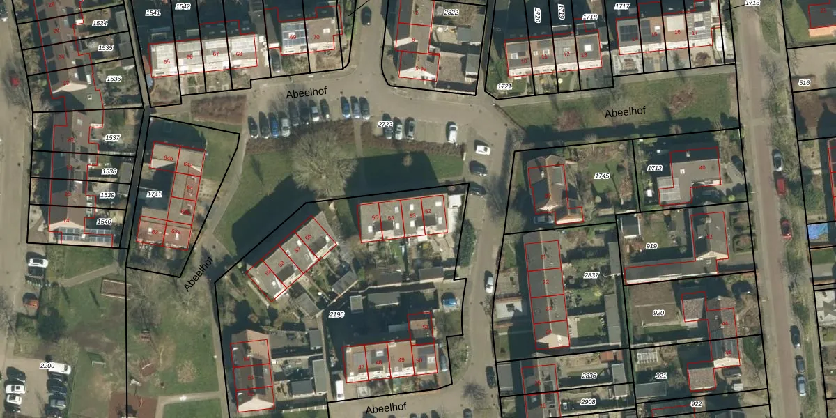Het perceel waarop Abeelhof 53 staat heeft een oppervlakte van 2702 m². Dit is een zeer groot perceel. De perceeloppervlakte wordt geregistreerd door het Kadaster. Gedetailleerde informatie over de maten van dit perceel kunt u vinden in het rapport Kadastrale kaart met maatvoering van Abeelhof 53.